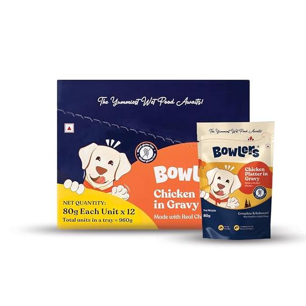 Bowlers Adult Wet Dog Food | Chicken Platter in Gravy |80 GMS| Gluten Free | Supports Hydration | Smooth Digestion & Healthy Coat