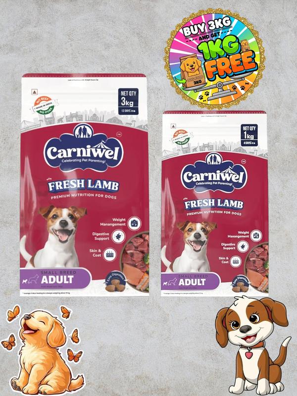 BUY 3KG & GET 1KG FREE Carniwel Dry Dog Food for Small Breed, Adult, Veg with Superfoods, Kibble is specifically formulated for small dog adult dogs (1 year and older) to meet their unique dietary needs.This product provides complete and balanced nutrition for overall health and development.The ingredients used are Rice, Soy Protein, Vegetable Lipids (Omega-6 Fatty Acids), Vegetable Protein Isolate, Chickpeas, Whole Flaxseeds (Omega-3 Fatty Acids), Vegetable Fibres, Algal Oil (EPA & DHA), Seaweed, Spirulina, Sweet Potato, Yeast Extracts (Beta-Glucan & MOS), Preservatives, L-carnitine, Vitamins, Minerals, Antioxidants.