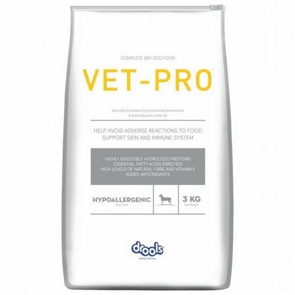 VET PRO HYPOALLERGENIC Food sensitivities and intolerance can be the root cause of various allergies in dogs. Your pet may suffer allergies in different parts of the body that may be quiet miserable. Vet-Pro Hypoallergenic is a specialized dog food formulated with the right nutrients in the right quantities, to cure and defend various allergies in your pet. It has Hydrolyzed proteins which is highly digestible and less likely to cause an allergic reactions.