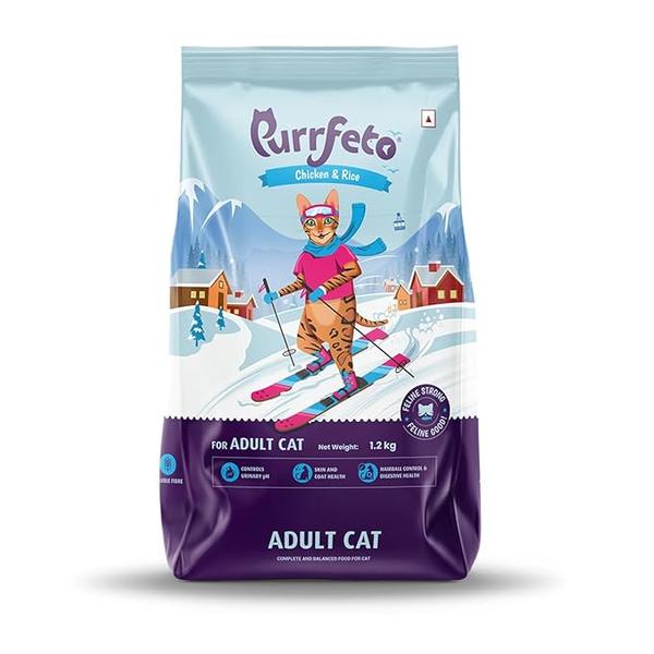 Purrfeto Adult Dry Cat Food | Chicken & Rice | 1.2 kg Ingredients |40% Reduction in Urinary Track Diseases |Anti Hairball Formula |Healthy Skin & Coat |Improves Digestive Health
