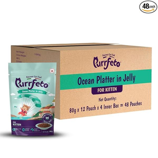 Purrfeto Kitten Wet Cat Food | Ocean Platter in Jelly |80 GMS Gluten Free | Supports Hydration | Highly Palatable